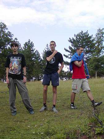 U opasnosti da nam se dotada dobar provod završi besciljnim lutanjem niz potok (pošto niko nije bio zainteresovan za kupanje) meni pade na pamet da predložim da se malo pontramo po brdima. Klinci ko klinci odmah se napalili i tako mi krenemo. Naravno neki su se malo više napalili pa je bilo i trčanja uzbrdo (Mitra i Mush ko bi drugi) a posle toga i isplaženih jezičina :) Odjednom stvari su se promenile. Jutros krmeljavi losttempl koji je ceo dan beskorisno davao savete sad se pokazao na delu. Bio je baš oran za pentranje te je u svakoj prilici kada su Mitra i Mush (izmoreni ranijim trćanjem) hteli da se vrate pretezao na stranu daljeg penjanja a u tome smo mu se zdušno pridruživali Iron i ja. Tako se penjanje nastavljalo i bilo nagrađivano sve lepšim prizorima. |